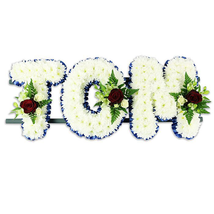 Celebrate a cherished life with our CUSTOM TOM TRIBUTE from Flowers Lower Clapton. This elegant funeral letter tribute is lovingly crafted with lush white chrysanthemums, classic red roses and delicate white freesias to create a dignified and heartfelt display. Designed to convey your deepest condolences, it is a beautiful way to honour the memory of someone special and offer comfort to family and friends.